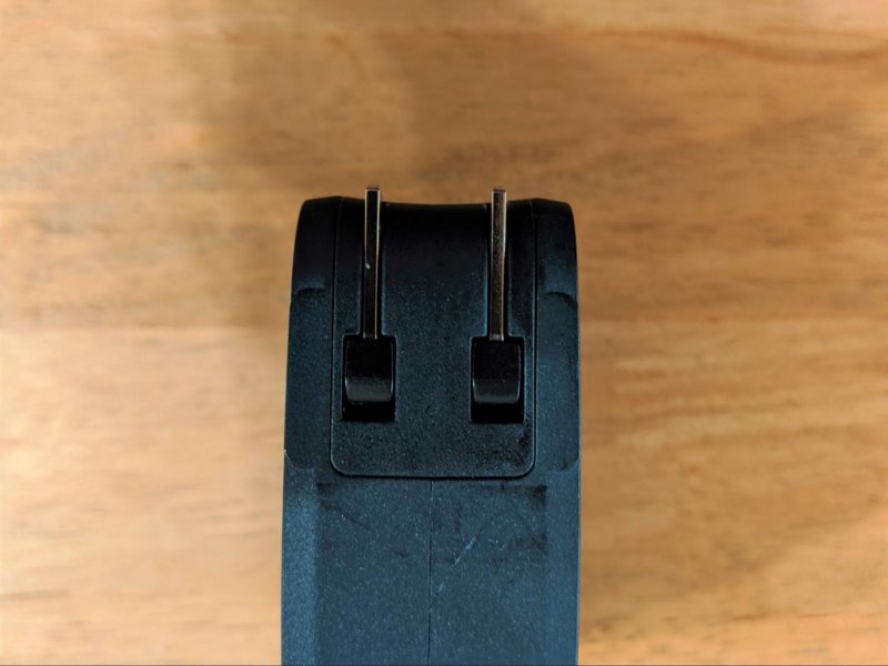 充電プラグは簡単に折りたたみ式で、カバンに入れておいても他の荷物と引っ掛かりません。