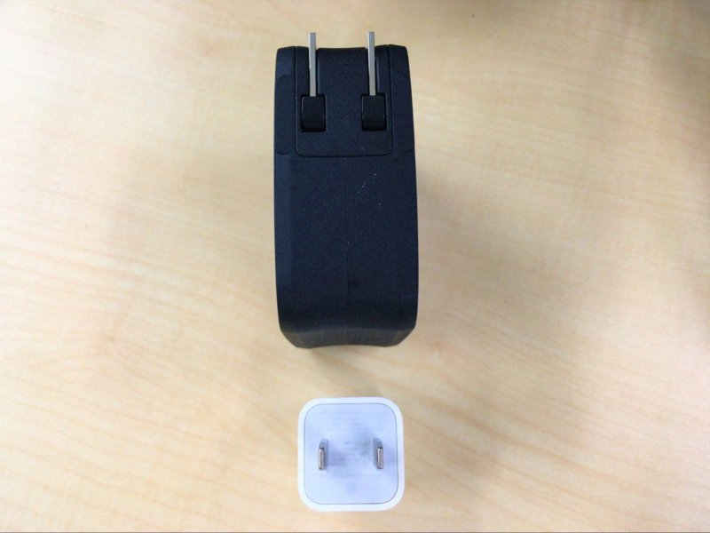 iPhoneの純正充電器と比較しても厚みは大差ありません。コンセント接続時に邪魔にならない絶妙な設計だと思います。
