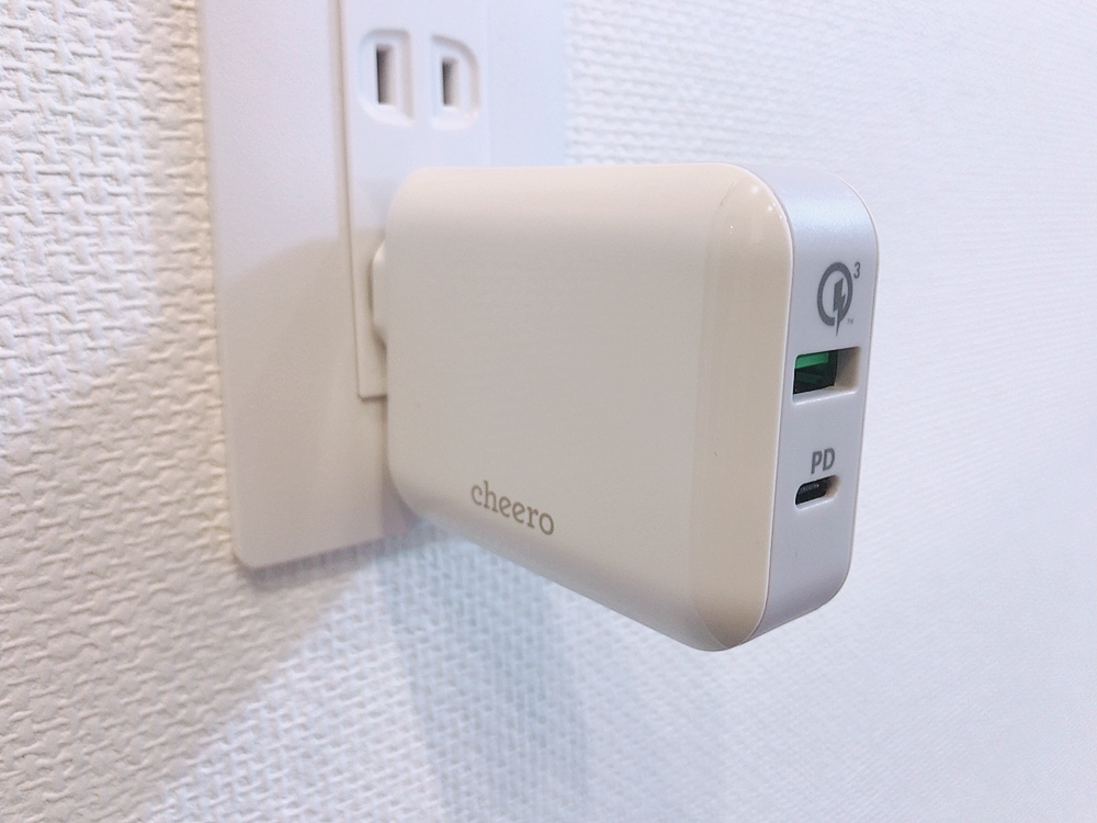 【cheero Smart USB Charger 48W レビュー】超軽量&コンパクトの2ポートUSB充電器 PD&QC対応【CHE-320】